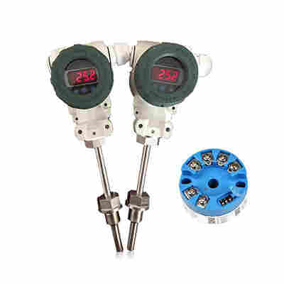 SBW系列隔爆型、本安型帶熱電阻、熱電偶溫度變送器,它集熱電偶或熱電阻同變送器為一體,能直接測量-200~800℃范圍內的液體、蒸汽和氣體介質的溫度,儀表采用二線制傳送方式,將溫度轉變成與熱電阻、熱電偶信號成正比的4-20mA統一輸出信號,送顯示、記錄調節儀表或計算機,上海自動化儀表三廠生產的SBWZ-2480/24Sd隔爆一體化熱電阻溫度變送器防爆性能符合頒布的GB3836標準,能測量-100~500℃范圍內的介質溫度,還具有耐震、耐潮濕、精度高、功耗低、使用環境溫度范圍廣,工作穩定可靠等優點,被廣泛應用于冶金、石油化工、制藥、電力、紡織、食品、科研等工業部門。