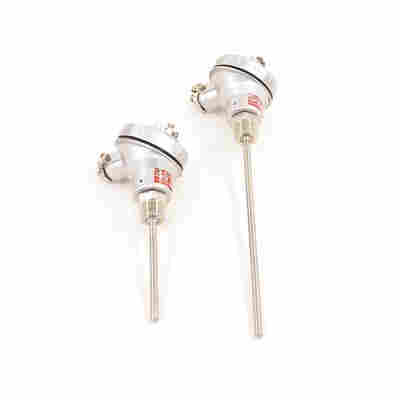 隔爆或本安熱電偶與裝配式熱電偶的結構、原理基本相同,所區別的是,隔爆或本安型產品接線盒(外殼)在設計上采用防爆特殊結構,接線盒用高強度鋁合金壓鑄而成,并具有足夠的內部空間是、壁厚和機械強度,橡膠密封圈的熱穩定性均符合防爆標準。所以,當接線盒內部的爆炸性混合體氣體發生爆炸時,其內壓不會破壞接線盒,而由此產生的熱能不能向外擴散一傳爆。