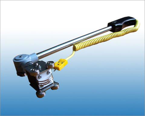 量程:0-600℃, 適用于光滑的金屬或塑膠圓柱體,滾筒表面溫度測量。如:煉膠(塑)機、壓延機、瓦欏紙機、滾筒及烘缸等表面溫度,可不停車測量。